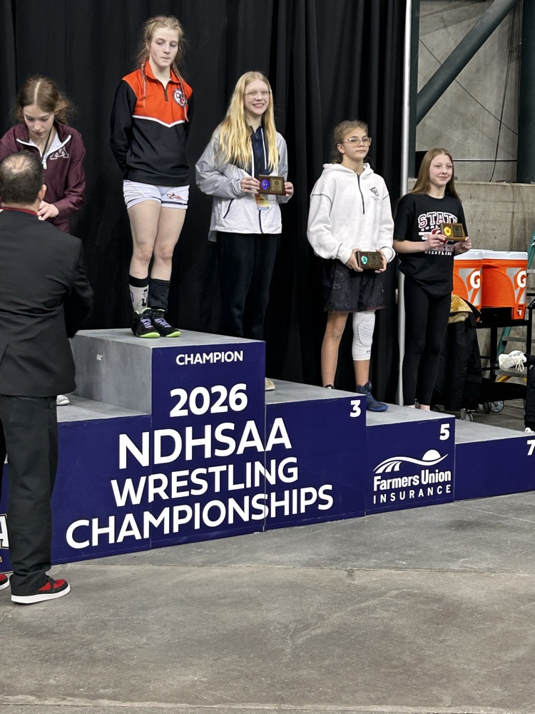 Congrats to both the boys and girls wrestling teams on a wonderful season! We have THREE state placers, Maddix Moch placed 6th in 145, Evie Satrom placed 3rd in 100, and Jozlynn Boyer placed 5th in 112! Great job wrestlers on a great state tournament!